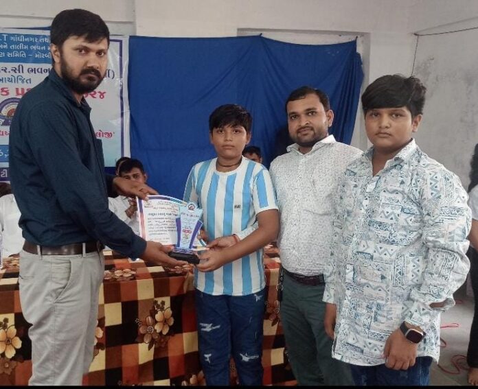 માળીયામિંયાણાના ખાખરેચી ગામે સી.આર.સી કક્ષાના બાળ વિજ્ઞાન પ્રદર્શન ૨૦૨૪-૨૫માં વેજલપરના બે વિધાર્થીઓ ઝળક્યા હતા જાણવા મળતી વિગત મુજબ માળીયામિંયાણાના ખાખરેચી ગામે સી.આર.સી કક્ષાનુ ગણિત અને વિજ્ઞાન પ્રદર્શન યોજાયું હતુ જેમાં શ્રી વેજલપર તાલુકા શાળાના હોનહાર શિક્ષક ધર્મેન્દ્રભાઈ પારજીયાના માર્ગદર્શન હેઠળ શાળાના વિદ્યાર્થીઓ હર્ષ કાનજીભાઈ ઝીંઝુવાડીયા અને મૌલિક હિતેશભાઈ સાંતલપરાએ ભાગ લીધો હતો જે બંન્ને વિદ્યાર્થીઓએ ૬૦૦ વર્ષ પુરાણું કેલેન્ડર બનાવીને રજૂ કરતા ઉપસ્થિત સૌ ચકચકિત થઈ ગયા હતા આ કેલેન્ડરની ખાસિયત ૬૦૦ વર્ષના કેલેન્ડરમાં તારીખ ઉપરથી વાર કઈ રીતે શોધવો તેની ગણતરી કરતા આ કેલેન્ડર કૃતિની રજુ કરીને સારું પ્રદર્શન કરેલ હતું જેમાં બંને વિદ્યાર્થીઓએ પ્રથમ નંબર મેળવી શાળા પરીવાર અને સમગ્ર વેજલપર ગામનું ગૌરવ વધારીને સી.આર.સી કક્ષાના બાળ ગણિત વિજ્ઞાન પ્રદર્શનમાં છવાઈ ગયા હતા જેના પરથી કહી શકાય કે શિક્ષક કભી સાધારણ નહીં હોતા તે ઉક્તિ મુજબ બાળકને ઉંચાઈ ઉપર લઈ જવા માવતર પછી માસ્તરનો સિંહ ફાળો હોય છે માવતરનુ ઘડતર અને માસ્તરનુ ભણતર બાળકને ઉંચાઈ પર પહોંચવા કાફી હોય છે જેને ઉંચી ઉડાન ભરવા સફળતાના શિખર સર કરવા કોઈ રોકી નથી શકતુ કેમ કે પ્રલય ઔર નિર્માણ ઉસકી ગોદ મેં પલતે હૈ શિક્ષક ગુરૂ જ્ઞાન પીરસે ભણાવવાની રીત બાળકો પ્રત્યે હેત વિધાર્થીઓને શિક્ષણ તરફ ધ્યાન કેન્દ્રિત કરવા મહત્વનો ભાગ ભજવે છે જે સી.આર.સી કક્ષાના ગણિત વિજ્ઞાન પ્રદર્શનમાં વિધાર્થીઓની સફળતા પાછળ શિક્ષક ધમેન્દ્રભાઈ પારજીયાની મહેનતનો મહત્વનો ફાળો રંગ લાવ્યો છે અત્રે ઉલ્લેખનીય છેકે ખાખરેચી ગામના આંગણે યોજાયેલા સી.આર.સી કક્ષાના બાળ ગણિત વિજ્ઞાન પ્રદર્શનમાં બંને વિધાર્થીઓએ પ્રથમ નંબર મેળવતા વેજલપર તાલુકા શાળાના હોનહાર શિક્ષક ધમેન્દ્રભાઈ પારજીયાની મહેનત રંગ લાવી હોય તેમ બંને વિધાર્થીઓએ શિક્ષકની મહેનત ઉપર ખરા ઉતરીને પ્રથમ નંબર મેળવી શાળા પરીવાર અને સમગ્ર ગામનું ગૌરવ વધારી નામ રોશન કરતા શાળા પરીવારે બંને વિધાર્થીઓને અભિનંદન પાઠવ્યા હતા વધુમાં આ બંને વિધાર્થીઓએ સી.આર.સી કક્ષામાં પ્રથમ ક્રમાંક મેળવી ઝળક્યા બાદ મોટીબરાર મોડેલ સ્કૂલ ખાતે યોજાયેલા તાલુકા કક્ષાના બાળ વિજ્ઞાન પ્રદર્શનમાં ભાગ લીધો હતો જેનુ પરીણામ આગામી સમયમાં જાહેર થશે જેથી શાળાના શિક્ષકોએ તાલુકા કક્ષાએ પણ બંને વિધાર્થીઓ પ્રથમ નંબર મેળવીને વેજલપર શાળાનું ગૌરવ વધારે તેવા અભિનંદન પાઠવી જુસ્સો વધાર્યો હતો