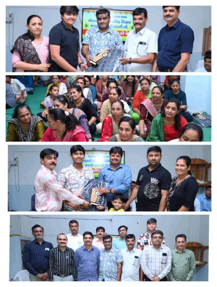 મોરબી શહેરમાં શિક્ષકો માટે, શિક્ષકોની અને શિક્ષકો દ્વારા ચાલતી શિક્ષક શરાફી મંડળીની અઠ્ઠાવીસમી સાધારણ સભા અત્રેની તાલુકા શાળા નંબર:- 1 બુનિયાદી કન્યા શાળા ખાતે કલ્પેશભાઈ મહોત મંડળીના પ્રમુખના અધ્યક્ષ સ્થાને યોજાઈ ગઈ,આ મંડળી મોરબી શહેરના 355 જેટલા શિક્ષકો સભાસદ છે જેમાં શિક્ષકોને રૂપિયા પંદર લાખનું માતબર ધિરાણ આપવામાં આવે છે,વિજયભાઈ દલસાણીયાએ ઉપસ્થિત સૌ મહાનુભાવો અને સભાસદોનું શાબ્દિક સ્વાગત કર્યું જયેશભાઈ બાવરવા મંત્રીએ મંડળીના સમગ્ર વર્ષના હિસાબના લેખા જોખા રજૂ કર્યા મંડળીએ આ વર્ષે ત્રેવીસ લાખ રૂપિયાનો નફો કર્યો, પંદર ટકા ડિવિડન્ડ આપવાની જાહેરાત તથા હિસાબોને ઉપસ્થિત સભાસદો બહાલી આપી મંજુર કર્યા, ત્યારબાદ મંડળીના સભાસદ એવા શિક્ષકોના દિકરી દિકરાઓએ વર્ષ – ૨૦૨૪/૨૫ માં પ્રથમ ત્રણ નંબર પ્રાપ્ત કરેલ હોય એવા તેજસ્વી તરલાઓને ઉપસ્થિત મહાનુભાવોના વરદ હસ્તે બેગ અને સ્મૃતિ ચિહ્નન અર્પણ કરી સન્માનિત કરાયા હતા. આ સાધારણ સભામાં ધનજીભાઈ કુંડારિયા ડિરેકટર આરડીસી બેંક, દિનેશભાઈ વડસોલા જિલ્લા અધ્યક્ષ અખિલ ભારતીય રાષ્ટ્રીય શૈક્ષિક મહાસંઘ-મોરબી,