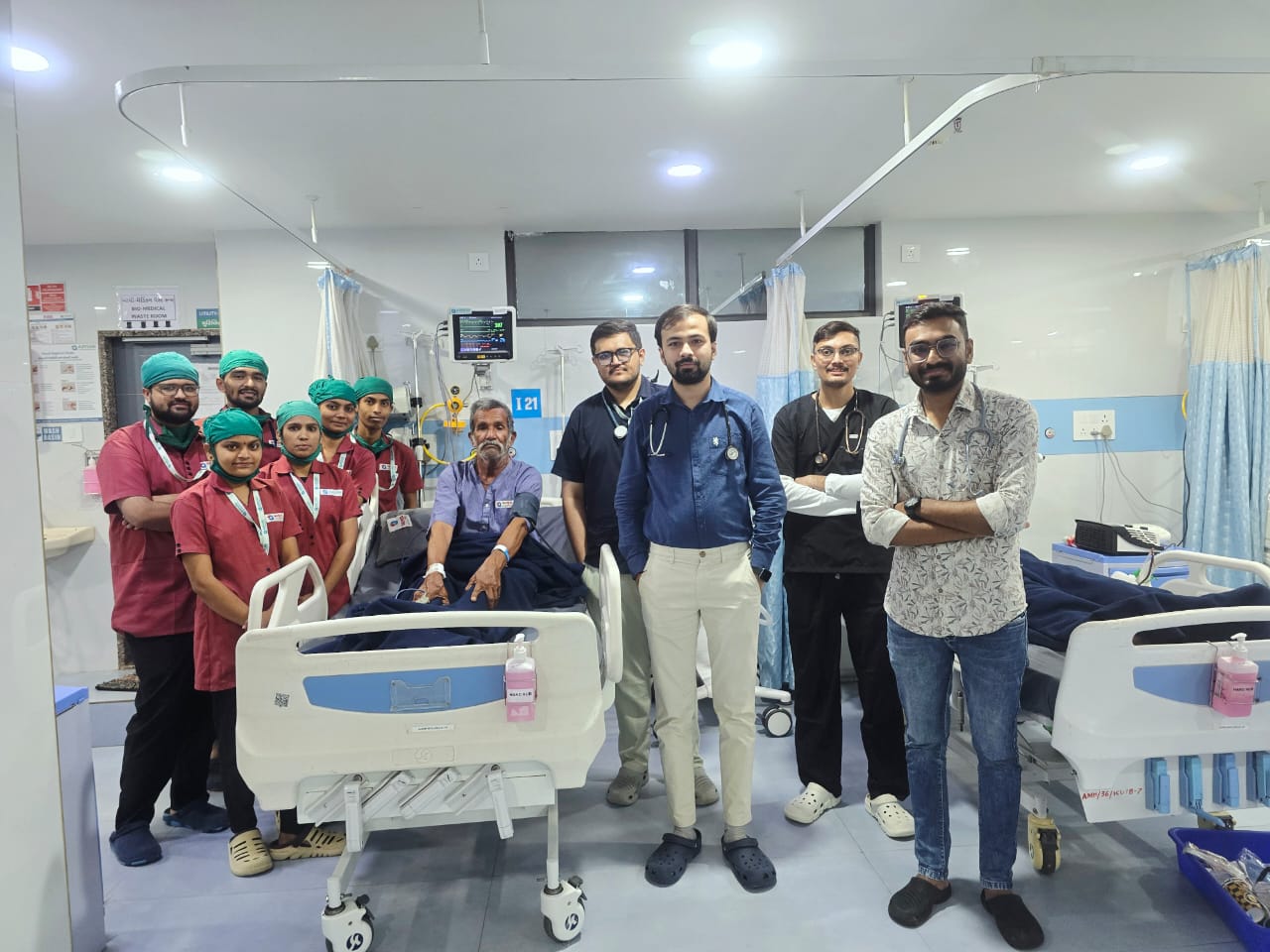 21 જુલાઈ, 2025 ના રોજ વહેલી સવારે 60 વર્ષના દર્દી આયુષ હોસ્પિટલ માં ઇમરજન્સી વિભાગ માં આવ્યા ત્યારે દર્દી ની હાલત અતિ ગંભીર હતી. અને ડૉ. સત્યજીતસિંહ જાડેજા દ્વારા તપાસ કરતા જણાયું કે દર્દી ને હૃદય નો મોટો હુમલો આવેલો છે. અને દર્દી ના હૃદય નું પમ્પીંગ ફંક્શન બંધ થાય જતા દર્દી ને CPR આપી અને વેન્ટીલેટર મશીન પર તાત્કાલિક ડૉ. સત્યજીતસિંહ જાડેજા દ્વારા મુકવામાં આવ્યા. તેમજ દર્દી નું બ્લડપ્રેશર માત્ર 60 SBP થય જતા બ્લડપ્રેશર વધારવા માટે ના ઇન્જેક્શન પણ આપવા પડ્યા, ત્યારબાદ દર્દી ને હૃદય ના મોટા હુમલાની અસર ને લીધે હૃદય ની બ્લોક થયેલી નડી ખોલવા માટેનું થ્રોમ્બોલાયસીસ માટે નું ઇન્જેક્શન પણ આપવામાં આવ્યું, આ દરમિયાન ફરીથી દર્દી ના હૃદય ના ધબકારા અતિ ગંભીર થઈ જતા કે જેમાં જીવનું પણ જોખમ હોય છે. એવા થય જતા દર્દી ને 4 DC SHOCK એટલે શોટના ઝટકા આપવા પડ્યા. આમ આટલી ગંભીર અને મરણાવસ્થામાં હોવા છતાં માત્ર ૩ દિવસ ની સારવાર બાદ રજા કરવામાં આવી અને દર્દી એ ડૉ. સત્યજીતસિંહ જાડેજા અને આયુષ હોસ્પિટલ નો આભાર માન્યો હતો