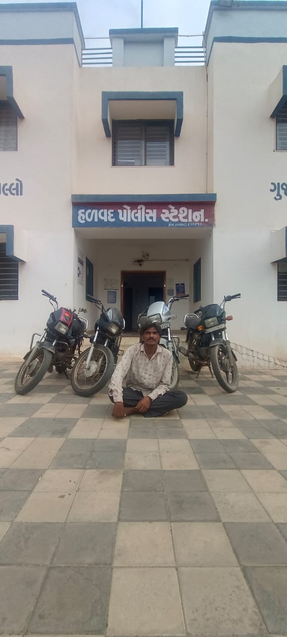 હળવદ પોલીસે મળેલ બાતમી મુજબ આરોપી રાજેશભાઇ ઉર્ફે રાજુ અરજણભાઇ પીપળીયા/ ઉ.વ ૩૨ ધંધો ખેતી રહે ગામ ખરેડા તા.જી.મોરબી હાલ રહે જેતપર સુનીલભાઇ શાંતીલાલ પટેલ ની વાડીએ તા.જી મોરબી વાળાને ચોરીના મોટર સાયકલ-૧ સાથે પકડી તેને વિશ્વાસમાં લઇ આગવી ઢબે પુછપરછ કરતા ચોરીના અન્ય મોટર સાયકલ-૩ કબ્જે કરી આરોપી વિરુધ્ધ કાયદેસરની કાર્યવાહી કરવામાં આવેલ છે.