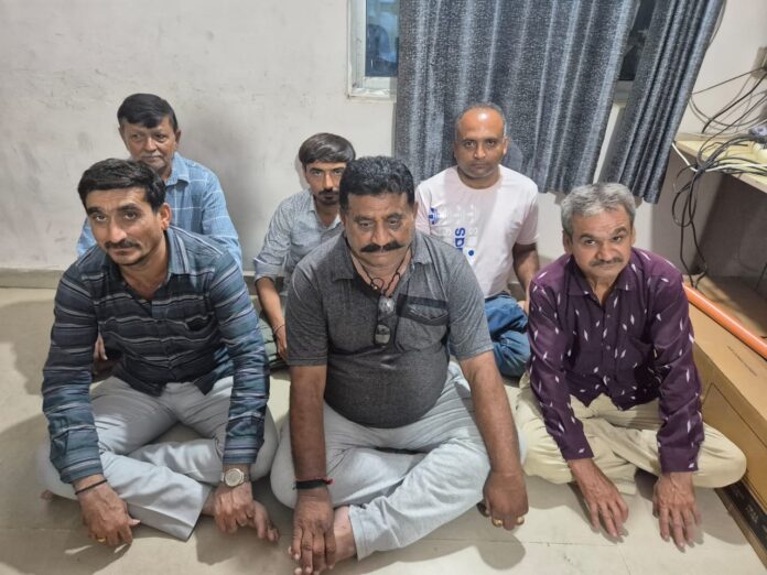 ટંકારા તાલુકાના લજાઇ ગામ પાછળ જીઆઇડીસીમાં આરોપીના કબ્જા ભોગવટાવાળા ગોડાઉનની ઓરડીમાં જુગાર રમતા કુલ-૦૬ ઇસમોને રોકડા રૂપીયા ૭૫,૨૦૦/-ના મુદામાલ સાથે મોરબી ક્રાઈમ બ્રાંચે ઝડપી પાડયા છે.