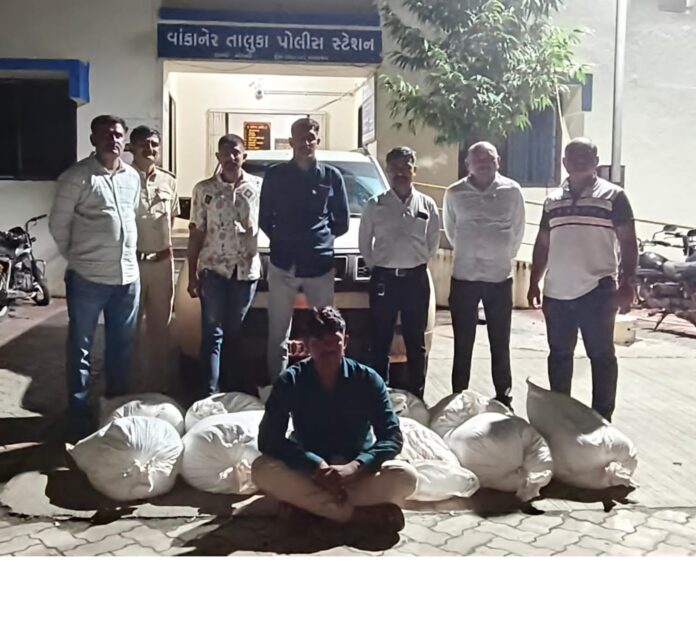 વાંકાનેર પોલીસ ને મળેલ બાતમી હકીકત આધારે વાકાનેર બાઉન્ટ્રીથી વાંકાનેર તરફ આવતા નેશનલ હાઈવે રોડ ઉપર આવેલ યક્ષપુરૂષનગર ગામ પાસે થી મહીન્દ્રા કંપનીની સફેદ કલરની ટી.યુ.વી કાર રજી.નંબર GJ-03-JC-6751 વાળી માથી દેશી દારૂ લીટર ૫૫૦ કિ રૂ.૧.૧૦,૦૦૦/-તથા મહીન્દ્રા કંપનીની સફેદ કલરની ટી.યુ. વી કાર કિ રૂ.૫,૦૦,૦00/- તથા ઓપો કંપનીનો એન્ડ્રોઈડ મોબાઈલ ફોન કિ રૂ.૫૦૦૦/-ગણી કુલ કિ રૂ.૬.૧૫,૦૦૦/- ના મુદ્દામાલ સાથે એક ઇસમને પકડી પાડી પ્રોહીનો ગણનાપાત્ર કેશ શોધી કાઢવામાં સફળતા મળેલ છે. તેમજ માલ મોકલનાર તથા માલ મંગાવનાર ઈસમોની શોધખોળ ચાલુ હોય જેથી મજકુર ઇસમો વિરૂધ્ધ પ્રોહીબીશન મુજબનો ગુન્હો રજી. કરી કાયદેસરની કાર્યવાહી કરવામા આવેલ છે.