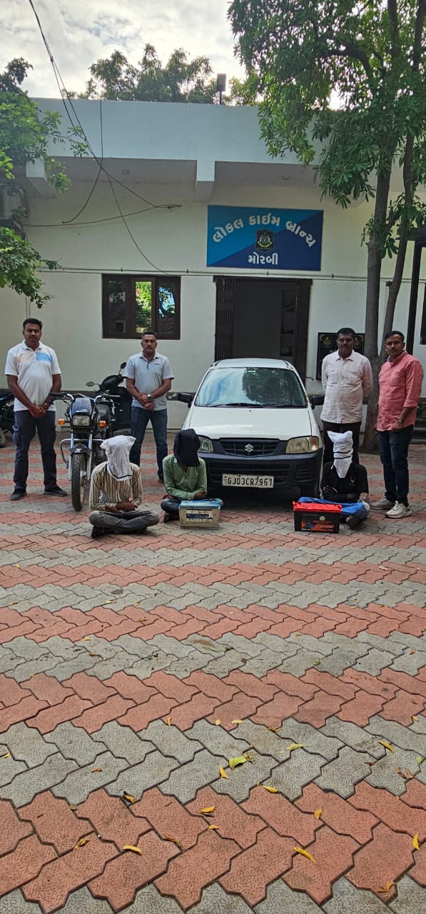 મોરબી એલ.સી.બી./પેરોલ ફર્લો સ્વોડને ખાનગી રાહે બાતમી મળેલ કે, એક સફેદ કલરની જુની અલ્ટો કાર જેના નંબર GJ-03-CR- 7961 વાળી પાવડીયારી કેનાલ પાસેથી નીકળનાર છે. અને પાછળ એક નંબર પ્લેટ વગરનુ નવુ કાળા કલરનું હીરો સ્પ્લેન્ડર મોટર સાયકલ નીકળનાર છે. જેમાં કારમાં બે ઇસમો બેઠેલા છે. અને હિરો સ્પ્લેન્ડર મોટર સાયકલ ઉપર એક ઇસમ બેઠેલ છે. એમ ત્રણેય ઇસમો આગળ પાછળ સાથે જેતપર રોડ ઉપર હરીપર બાજુથી પાવળીયારી કેનાલ તરફ આવી રહેલ છે. જે ઓ ત્રણેય ઇસમોએ આ લુંટ/ચોરીના ગુન્હાને અંજામ આપેલ હોવાની સચોટ બાતમી મળતા બાતમીવાળી જગ્યાએથી ત્રણ ઇસમો અયુબભાઇ અકબરભાઈ મોવર (ઉ.વ.૨૩) રહે.માળીયા(મી) વાગડીયા જાપા પાસે તા.માળીયા (મી), ગુલામ હુશેન ઉર્ફે ગુલ્લુ ઉંમરભાઇ સમાણી (ઉ.વ.૨૨) રહે.જુના રેલ્વે સ્ટેશન વાડા વિસ્તાર માળીયા મીયાણા અને ઇરફાનભાઇ ઇકબાલભાઇ સંઘવાણી (ઉ.વ.૧૯) રહે.જુના રેલ્વેસ્ટેશન વાડા વિસ્તાર માળીયા મીયાણાવાળાને લુંટ/ચોરીના ગુનામા ઉપયોગ કરેલ વાહન સહીત કુલ રૂપીયા ૯૩,૫૦૦/- ના મુદામાલ સાથે હસતગત કરી આગળની કાર્યવાહી કરવા માટે મોરબી તાલુકા પોલીસ સ્ટેશન ખાતે મોકલી આપેલ છે.