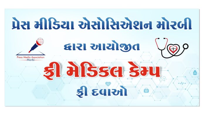 ગુજરાતી નવા વર્ષના પાવન પ્રસંગે આરોગ્ય આશીર્વાદના હેતુસર પ્રેસ મીડિયા એસોસિએશન મોરબી દ્વારા નિઃશુલ્ક મેડિકલ ચેકઅપ કેમ્પનું આયોજન કરવામાં આવ્યું છે. શહેરના નાગરિકોમાં આરોગ્ય જાગૃતિ વધે તે ઉદ્દેશથી જાણીતા નિષ્ણાંત ડોક્ટરોની ટીમ દ્વારા ફ્રી તપાસ તેમજ જરૂરી દવાઓ પણ ફ્રી આપવામાં આવશે.