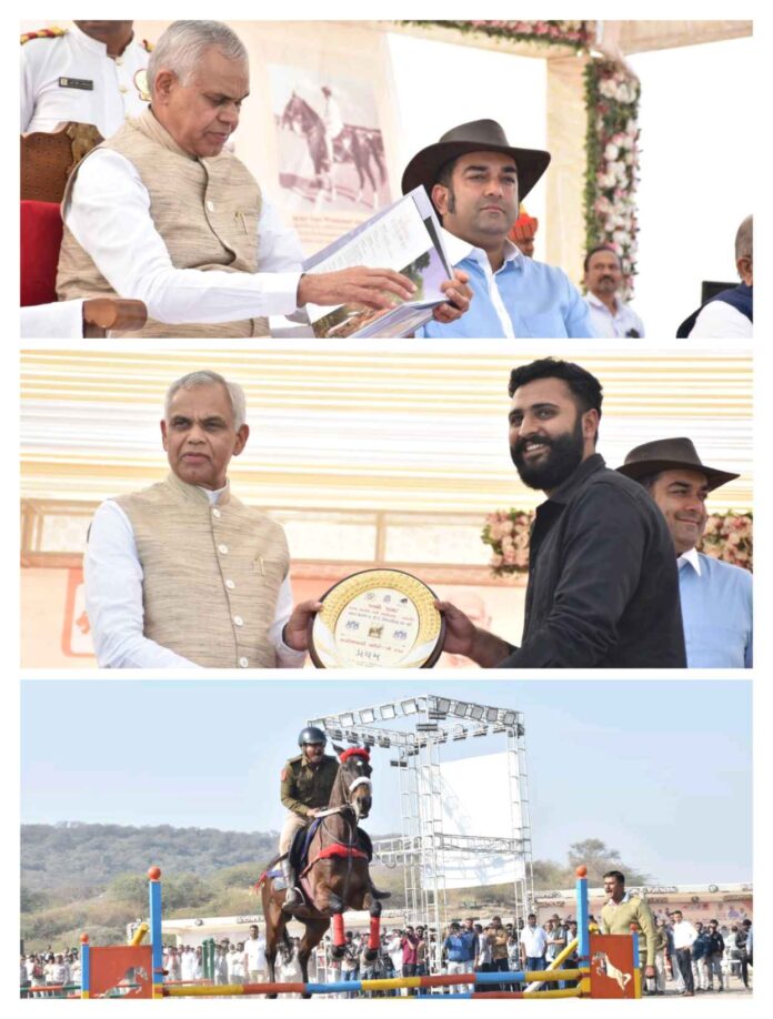 રાજ્યપાલએ અશ્વોનું પ્રદર્શન નિહાળ્યું; દેશી ગૌવંશનું નિરીક્ષણ કર્યું