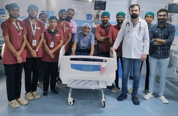 10 ફેબ્રુવારી,2026 ના રોજ 83 વર્ષના વૃદ્ધ દર્દી આયુષ હોસ્પિટલ મા ઇમરજન્સી વિભાગમાં અર્ધ બેભાન હાલતમાં આવ્યા. ડો. સત્યજીતસિંહ જાડેજા દ્વારા ઉંડાણમાં તપાસ કરતા જણાયું કે દર્દી નું ઓક્સિજન લેવલ માત્ર 78% છે, આંચકી આવેલી છે, હૃદયના ધબકારા અનિયમિત છે, લોહી ની ઉલટી થય છે અને એમને એસ્પિરેશન ન્યુમોનીયા નામની ગંભીર બિમારી લાગુ પડેલ છે, દર્દી નું સોડિયમ લેવલ ખુબ ઓછું છે, ફેફસામાં બંને બાજુ અતિશય ચેપ ફેલાયેલો છે, તેમજ દર્દીનું GCS લેવલ ખૂબ ઓછુ જણાતા અને શ્વસનક્રિયા અતિશય ગંભીર હોવાથી તેમને તાત્કાલીક વેન્ટીલેટર પર મૂકવામાં આવ્યાં. આમ 83 વર્ષની ઉંમર ની સાથે આટલી બધી જીવલેણ બીમારીઓ એક સાથે લાગુ પડેલ હોવા છતાં ડો.સત્યજીતસિંહ જાડેજા નું ઉડાણ પૂર્વકનું નિદાન અને સચોટ સારવાર ફરીવાર સફળ થતા અને દર્દીને ખૂબ સારૂ થય જતા માત્ર એક અઠવાડિયામાં દર્દી ની હોસ્પિટલ માંથી રજા કરવામાં આવી.
