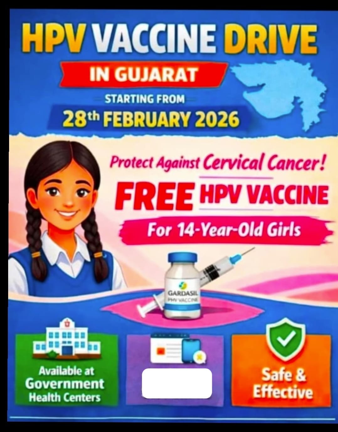 મોરબી જિલ્લાની કિશોરીઓને ગર્ભાશયના મુખના કેન્સર (સર્વાઇકલ કેન્સર) સામે મજબૂત રક્ષણ પૂરું પાડવા માટે સમગ્ર દેશ ને ગુજરાત રાજ્યની સાથે આગામી તા. ૨૮/૦૨/૨૦૨૬થી ‘HPV રસીકરણ’ જિલ્લાવ્યાપી અભિયાનનો પ્રારંભ કરવામાં આવશે. મોરબી જિલ્લામાં આ અભિયાન અંતર્ગત ૧૪ વર્ષ પૂર્ણ કરનાર અંદાજીત ૯,૫૦૦ દીકરીઓને આ રક્ષણાત્મક રસી આપવાનું લક્ષ્યાંક નિર્ધારિત કરવામાં આવ્યું છે.