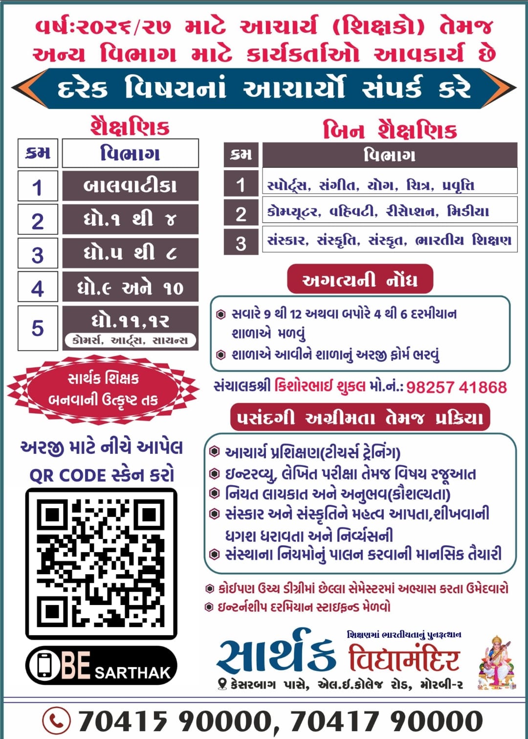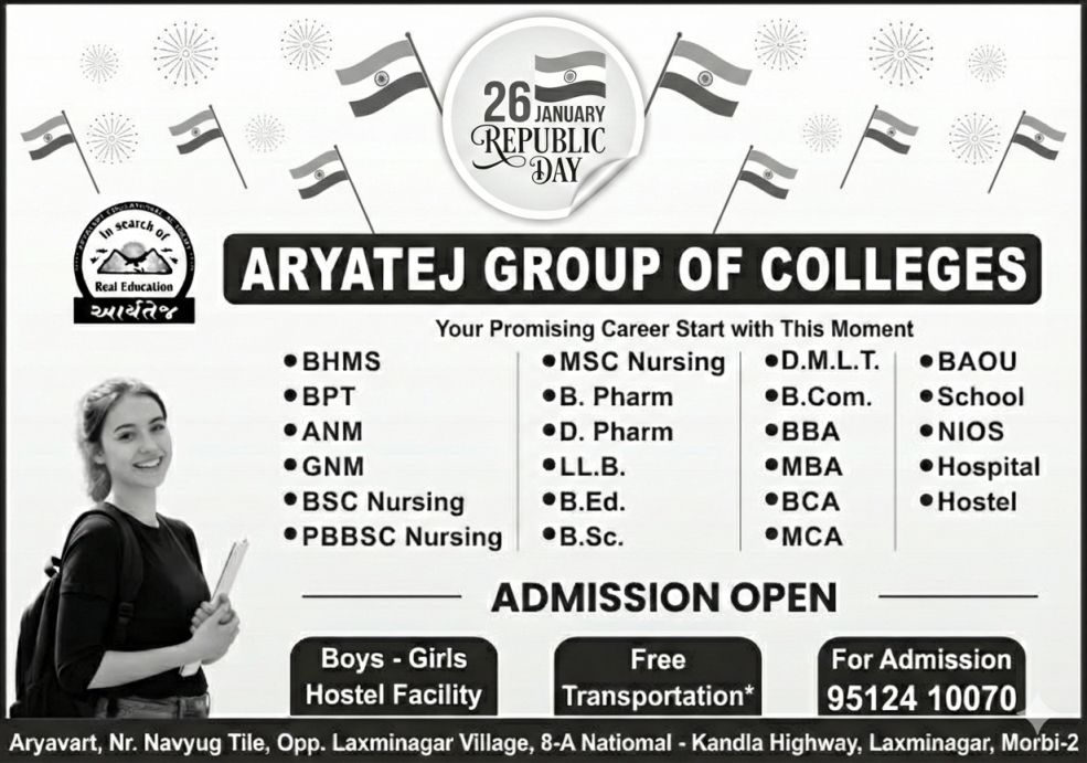મોરબી ના નવલખી રોડ પર રેલવે સ્ટેશન પાસે આવેલા આસ્થા ને શ્રધ્ધા ના પ્રતિકસમાં શ્રી ધક્કાવાળી મેલડી માતાજી મંદિર દ્વારા શ્રી ધક્કાવાળી મેલડી માં ચેરીટેબલ ટ્રસ્ટ મોરબી આયોજીત નવમો સમૂહલગ્ન તા ૨૭-૦૪-૨૦૨૬ ને સોમવારે યોજાશે આ સમૂહલગ્ન માં હિન્દૂ સમાજની ૨૧ દીકરીઓ લગ્નગ્રંથી માં જોડાશે સમૂહલગ્ન માં જોડાવવા સમૂહલગ્ન ના ફોર્મ તા ૧૦-૦૩-૨૬ સુધી માં મંદિરે થી સાંજે ૪ થી ૬ માં મેળવી લેવા માતા અથવા પિતા ગુમાવેલ તથા ગરીબ પરિવાર ની દીકરીઓ ને પ્રથમ પસંદગી આપવામાં આવશે આ સમૂહલગ્ન માં દાન આપવા માટે મંદિર ના ટ્રસ્ટી ધનુભા જાડેજા મો. ૯૭૨૬૨ ૨૮૨૦૨,વિનુભાઈ ડાંગર મો ૯૮૨૫૯ ૧૩૬૧૫,શૈલેષભાઇ જાની મો.૯૫૭૪૫ ૩૬૫૦૫ તેમજ ધીરુભા જાડેજા, કિશોરભાઈ અગ્રાવત,રમેશભાઈ સાણંદિયા, ભાવેશભાઈ મહેતા નો સંપર્ક કરવા યાદીમાં જણાવ્યુ છે.